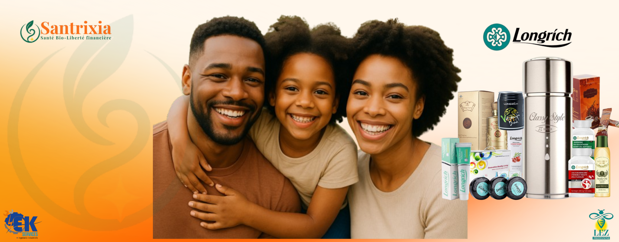 Soutenue par EK Services et LEZ Prestations, Santrixia vous guide vers la liberté. Notre objectif : santé durable, business accessible, réussite partagée.